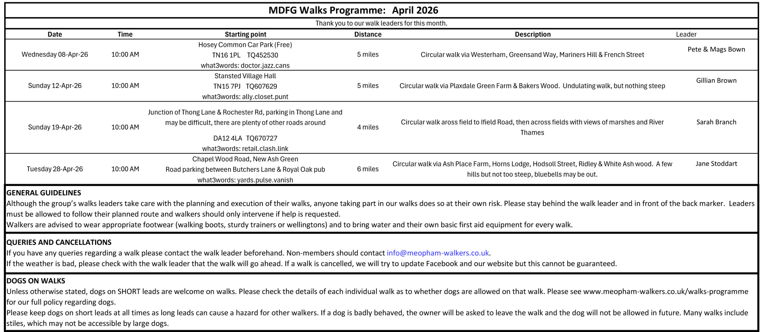 If the weather is bad, please check that the walk will go ahead. If a walk is cancelled, we will try to update Facebook and our website but this cannot be guaranteed.